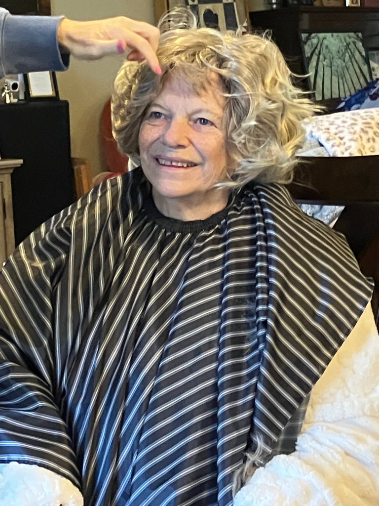 There’s something very strange — and very funny — about standing in your living room, scissors in hand, adjusting your mom’s wig while your dad casually models the rejected one. If you had told me this would be part of my cancer storyline, I would not have believed you.
