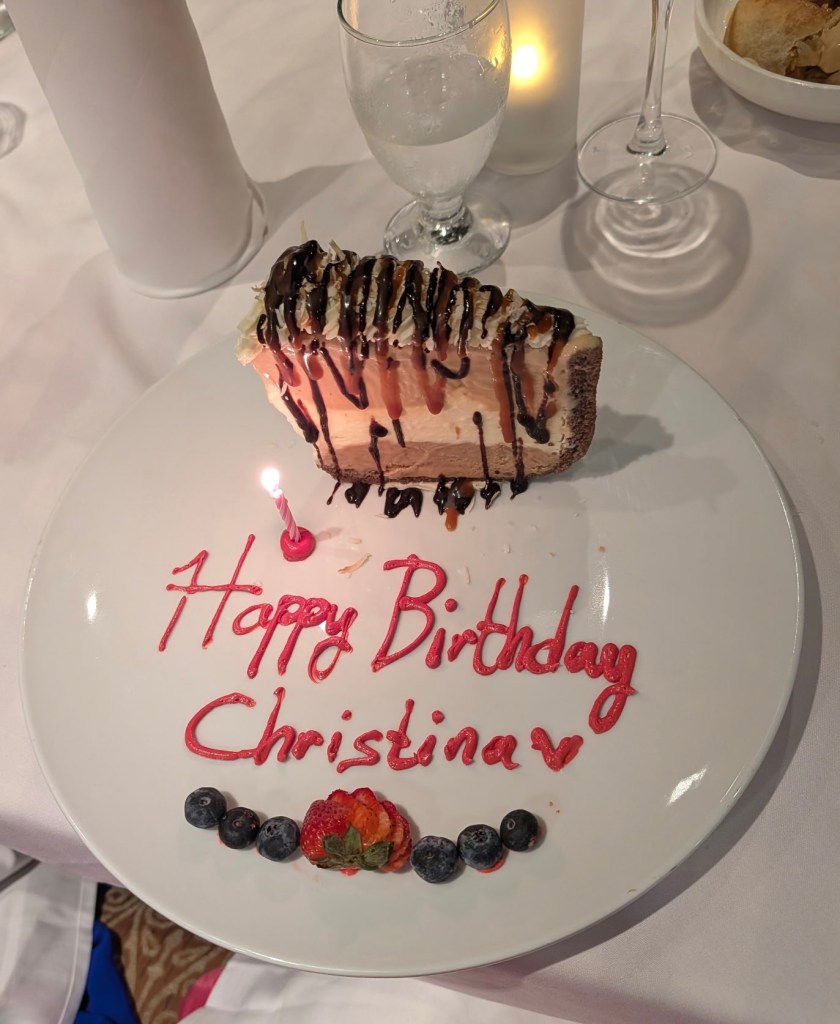 For my birthday dinner, we dressed up and went to the fancy Italian restaurant on the ship.