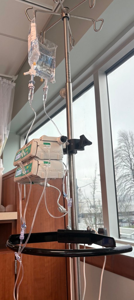 I took it alone in the hospital, sent it to Casey as proof of life — because we are absolutely not a couple who does “time apart” well.