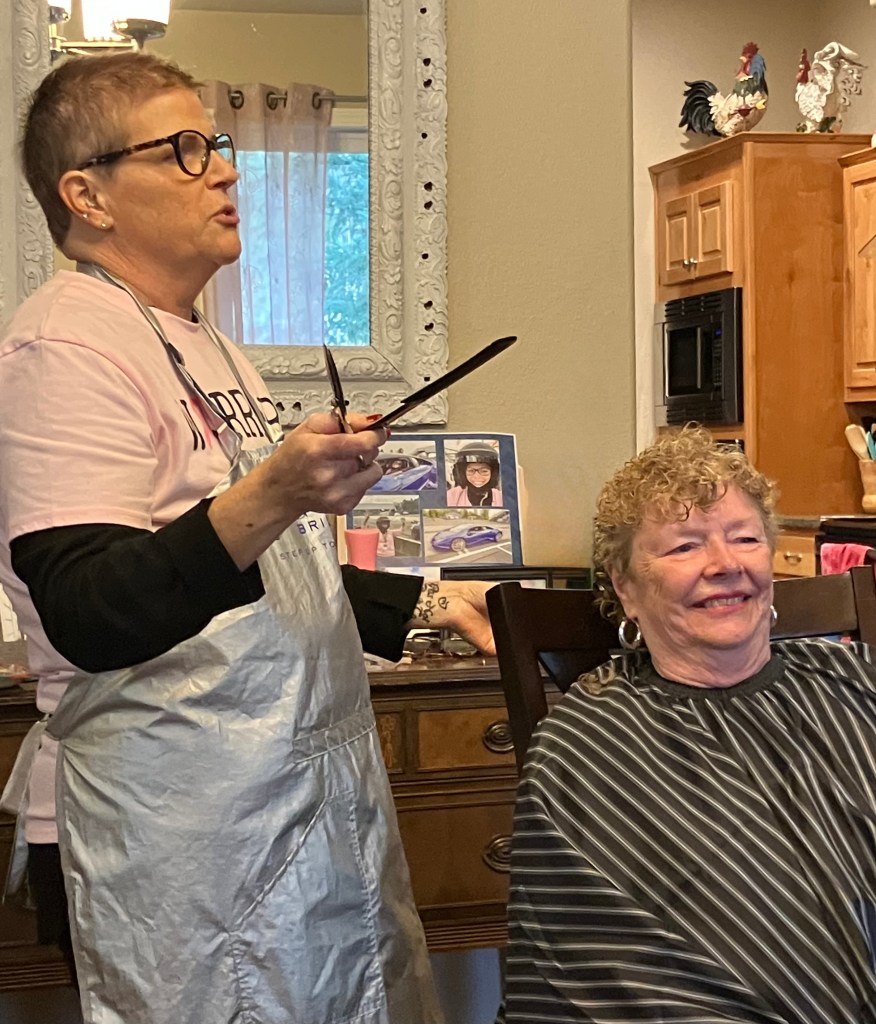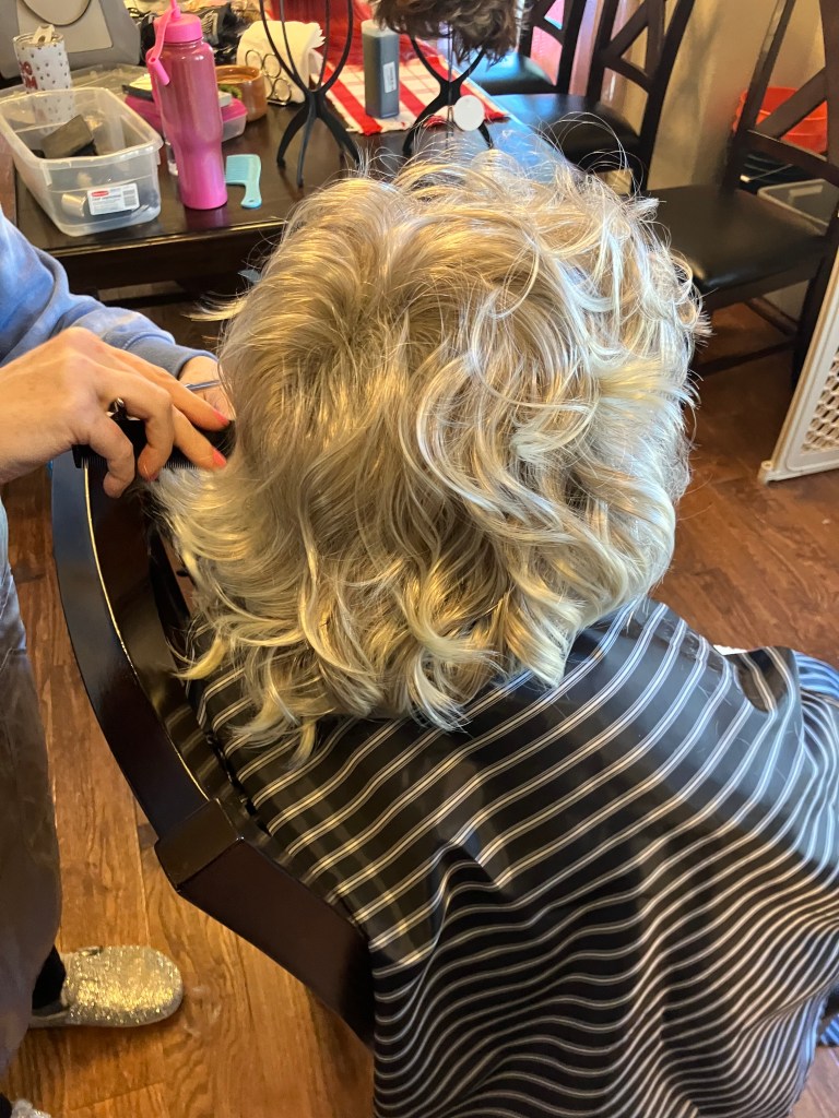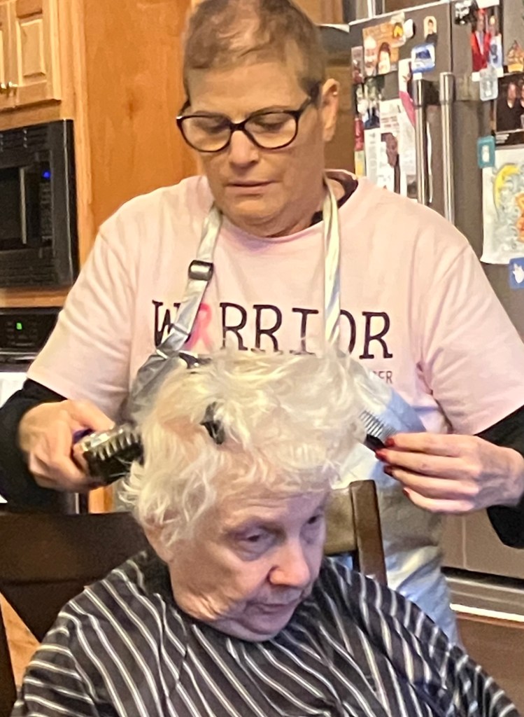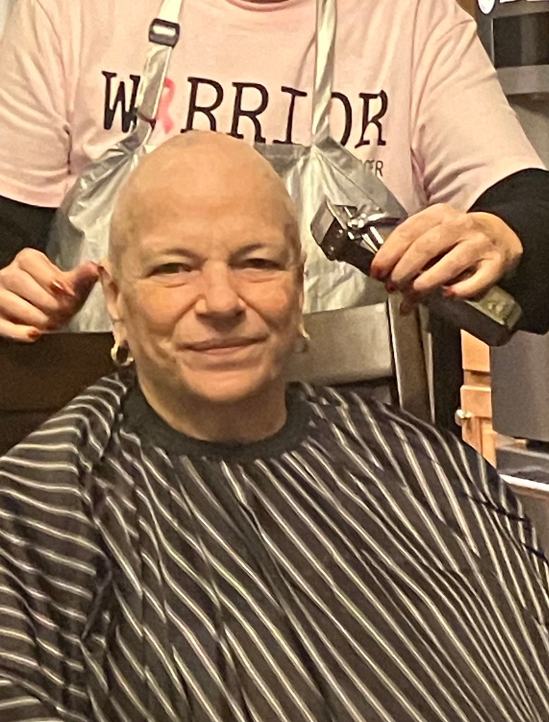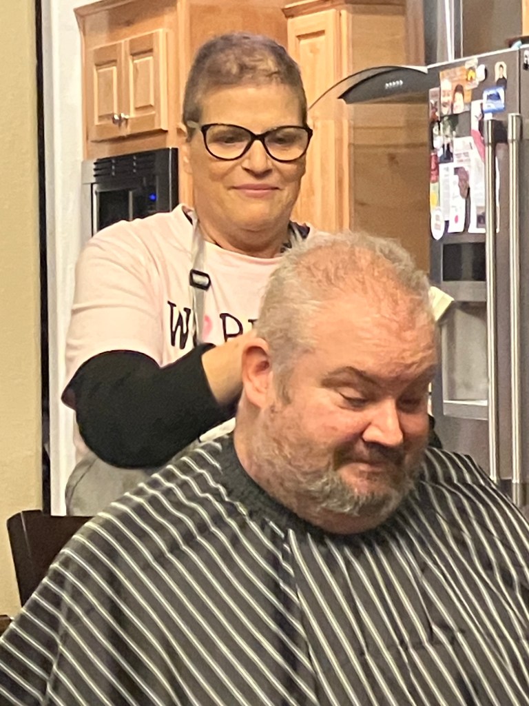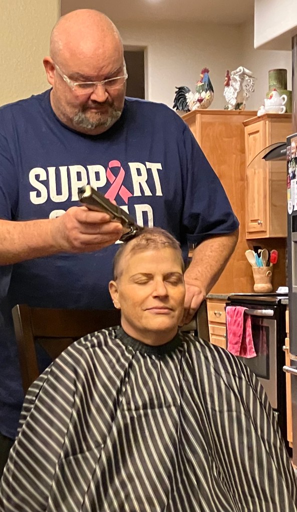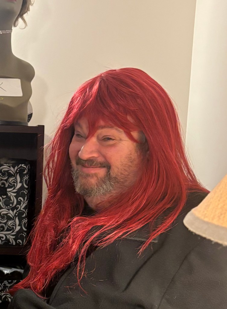 Today my mom brought over a couple of wigs she purchased after we had the head-shaving party. Her request was simple: