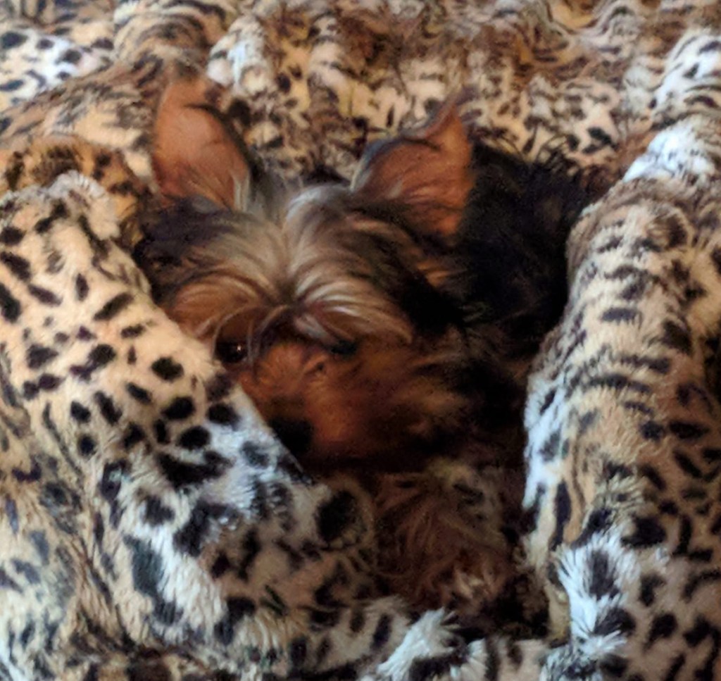 - My pink leopard Princess Blanket of Emotional Support™ – Thank you Teri!